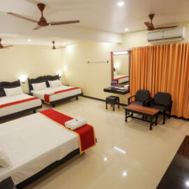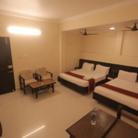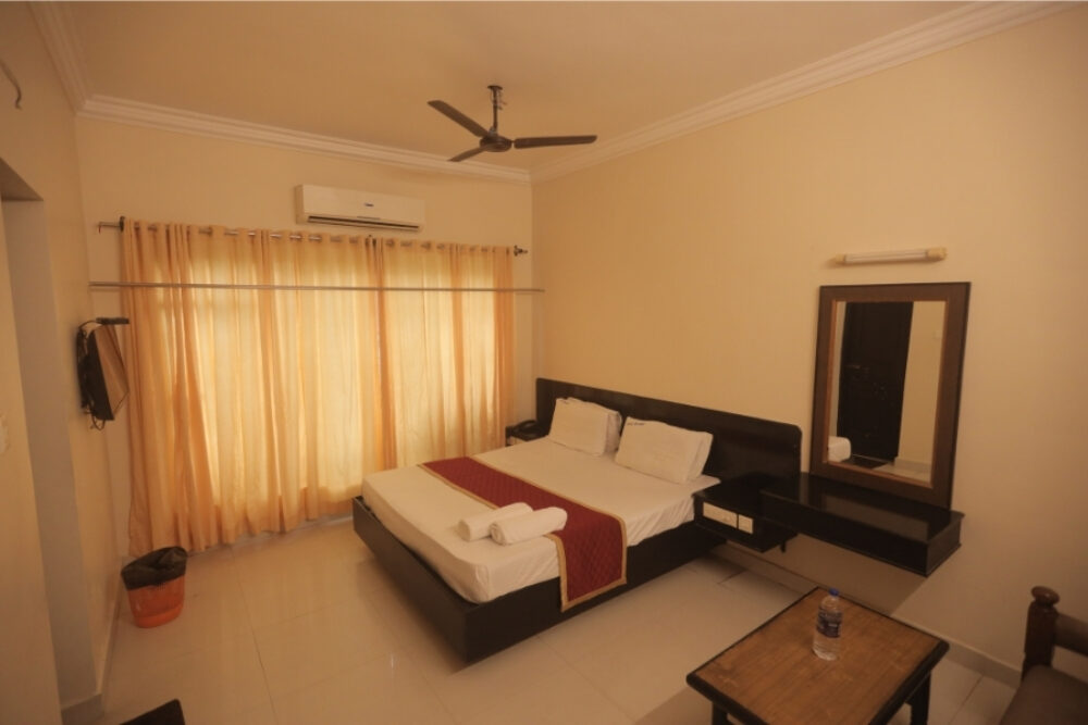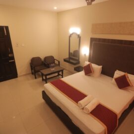 The standard rooms at Hotel Sridevi are crafted to suit the cultivated tastes of urban travelers. This standard room with a double bed consists of painted walls, decorations, furniture, and an overall atmosphere designed to suit all ages. Bathrooms have closets and western showers. The rest of the features include a large dressing table with mirrors, chairs, and LED TV. In addition to air conditioning and carpeting, the luxurious standard room has a king-size bed. This room is perfect for travel partners and colleagues or for meetings and conferences.